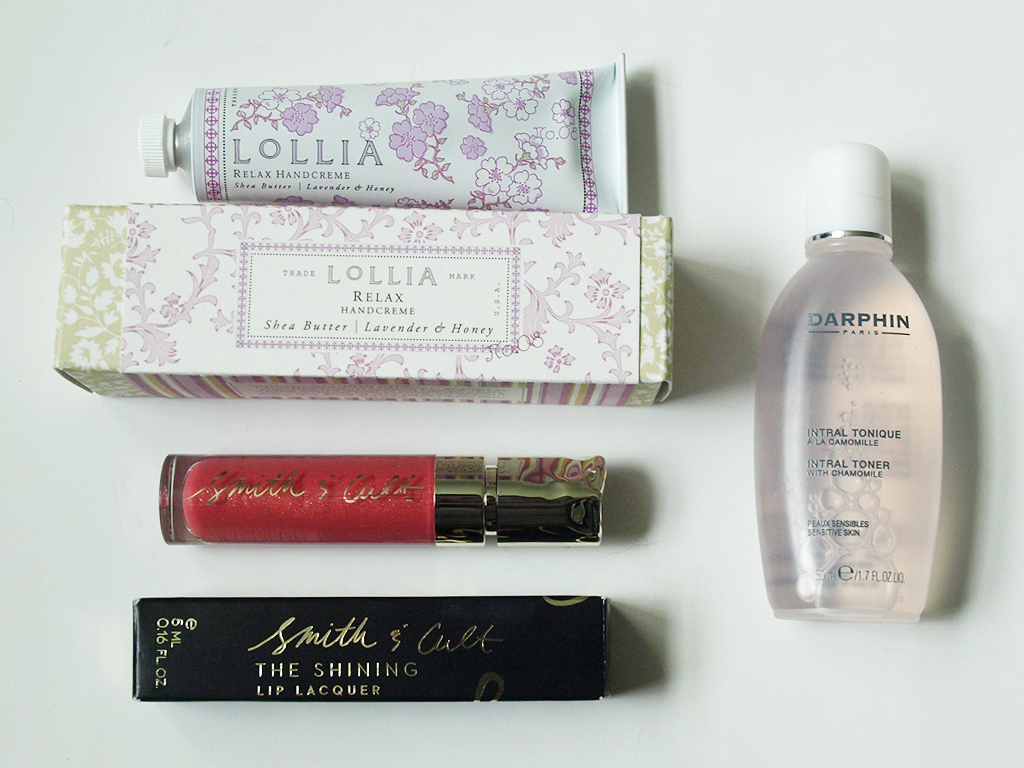- Smith & Cult The Shining Lip Lacquer in Hi-Speed Sonnet – How gorgeous is the packaging on this?! The color is a pretty pink that would be flattering on all skin tones, I think. The formula is kind of thick, so if you don’t like sticky lip glosses this might not be for you, but I like it a lot and I think it feels pretty hydrating.