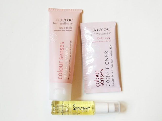 - Davroe Colour Repair Shampoo and Conditioner – I was so happy to get these two samples! I got professional highlights a month or two ago and only use color-safe shampoos now because I want to protect the color for as long as I can. I wish the conditioner wasn’t in a foil packet, but technically it’s a bonus sample, so I guess I can’t complain too much. I’m going to save these for my NYC trip next month.