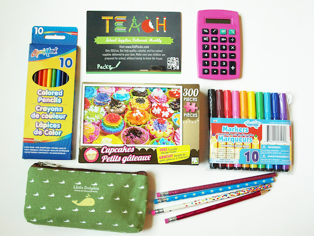 My favorite item is the Little Dolphin pouch! It’s so cute and I actually needed a pencil pouch to take to work. The puzzle is a fun addition, too. The markers, crayons, pencils, and calculator are something every kid will need for school.