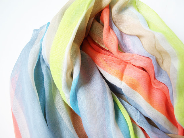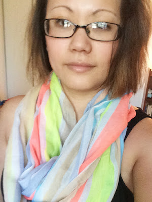 Sorry for the bad phone photo, but here’s the scarf on! I can’t take selfies with my DSLR, but this gives you an idea of how it looks. I much prefer infinity scarves because, I don’t know, I think they just look better than traditional ones. I love the colors in this and how lightweight the material is!