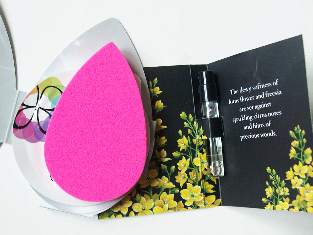Each box comes with a little drawstring bag with the samples inside. I think this is a cute idea, but I don’t really know what to do with the leftover bags each month. I guess I’ll figure out a way to use them as storage for all the samples I have building up in my closet!