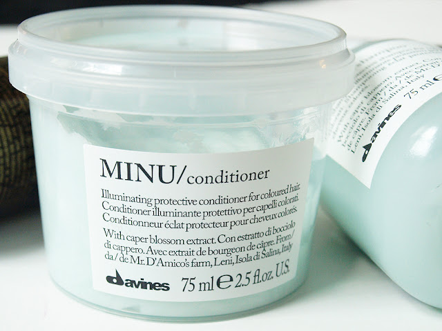 - Davines MINU Conditioner for Color-Treated Hair: I picked this to go along with the shampoo, obviously, but the reason I chose Davines over the other brand I was considering (the bumble & bumble Hairdresser’s Invisible Oil set) was because the sample sizes were much bigger. This tub is a great size.