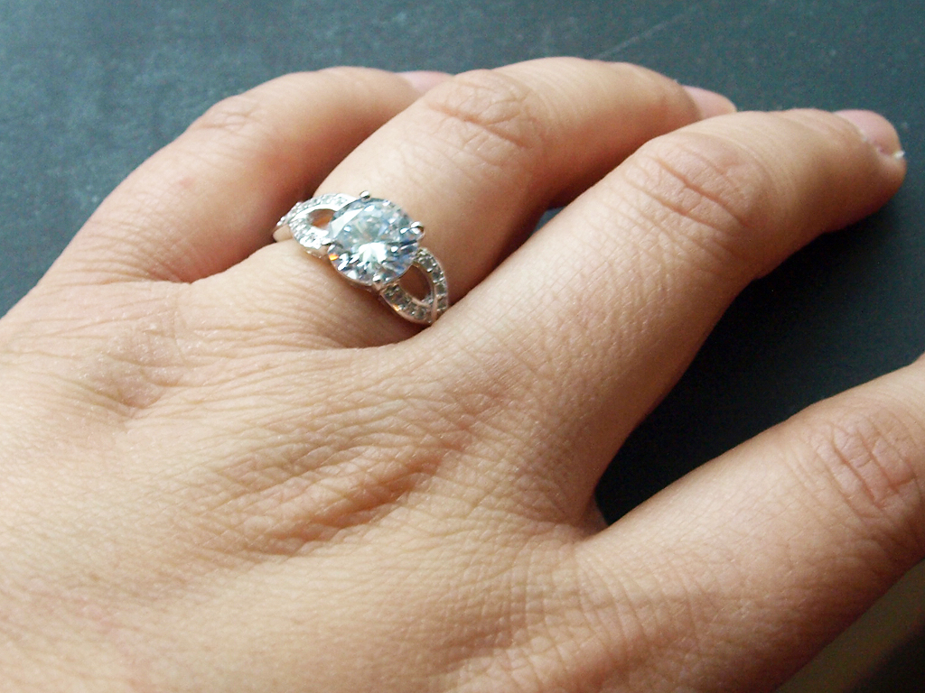 I normally wear a size 6 when it comes to rings, but this one was just the teensiest bit tight on me. Not so tight that I couldn’t wear it, but I had to squeeze a little bit to take it off. My ring size is weird, though, a 7 is way too big and sometimes a 6 is a bit too tight. But that’s beside the point. I really like this ring and it’s much fancier than anything else I own. I generally lean towards rings without any stones in them, so this is a new and different addition to my collection!