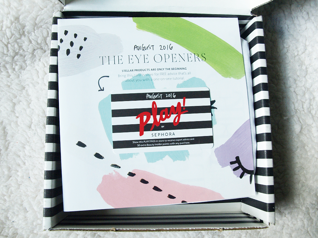 Each box comes with deluxe samples of products you can purchase at Sephora, and there’s also a Play! Pass. This pass gets you a free tutorial at a Sephora store using the items in the box, and you’ll get 50 extra Beauty Insider points if you make a purchase (can be used towards any purchase, you don’t have to buy the items sampled).