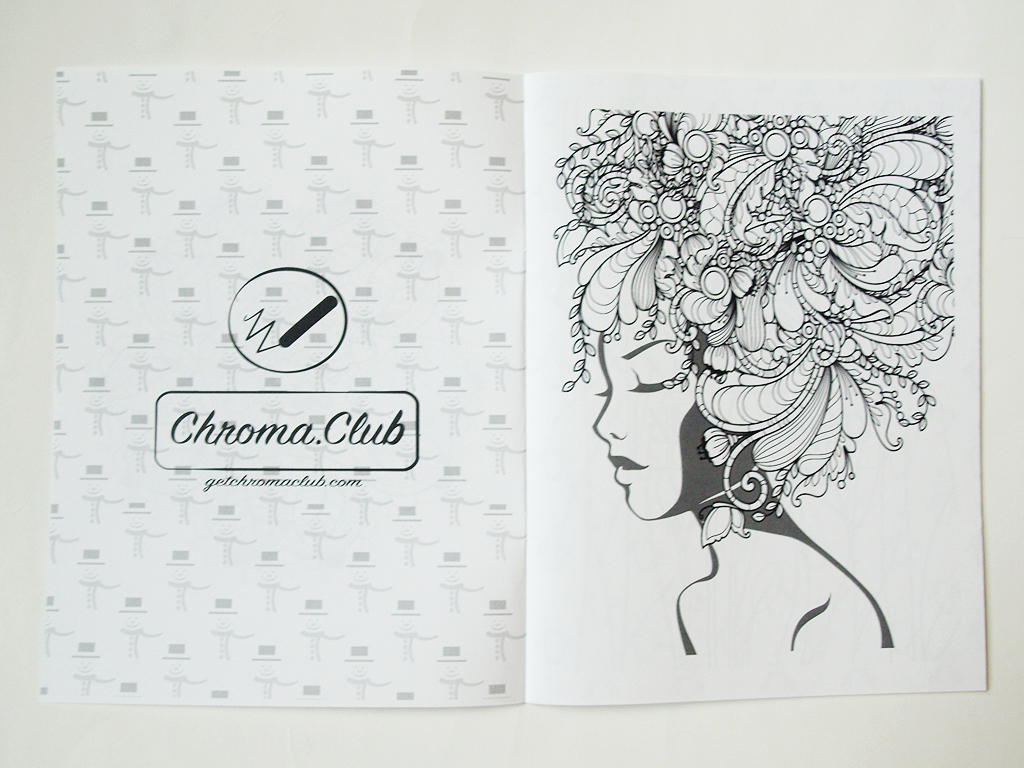 Each month, Color.Club sends a book filled with 11+ illustrations from all different artists. They’ve recently changed up their design and now feature larger books printed portrait style. The shipment does not come with any coloring tools, I added the colored pencils to the photo above for fun.