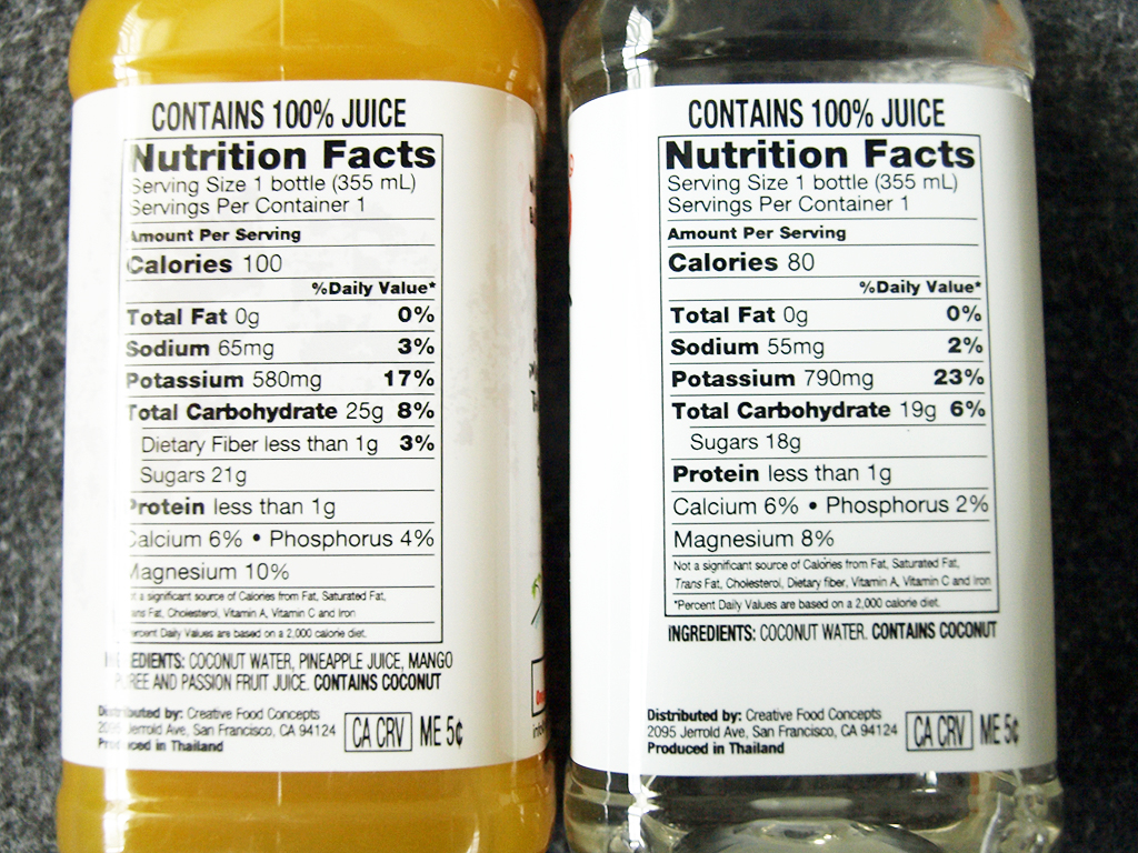 I received the Pure and Tropical waters to try. I’ve been using water and juice interchangeably because they’re both. I guess the coconut water is actually a juice. Anyway, as you can see from the ingredients list above both are made only with coconut water and fruit juices. One bottle is one serving, so 100 calories for the Tropical and 80 for the Pure bottle is not too bad in my opinion, especially if you’re drinking these post-workout.