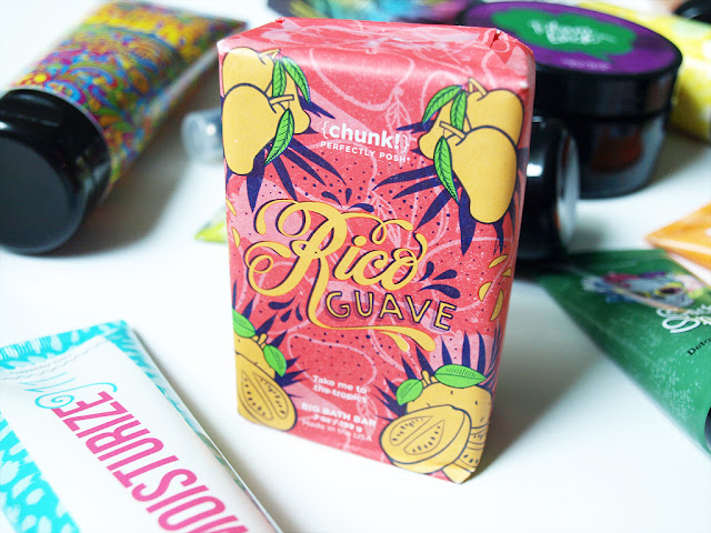 We also have bar soaps! I love bar soaps and I hoard them like crazy, so joining Posh was both a curse and blessing because they have so many delicious smelling soaps. Our soaps are called Chunks ($5-$9 each)and they’re huge — 4″ length, 2.5″ width, and 1.5″ thick (7 oz in weight). There are a bunch of different scents to choose from and bars with different uses. Pictured above is one of the newest scents, Rico Guave. It’s made with mango butter and guava extract to hydrate and white ginger and palm oil to wash away dirt and oil. It smells deliciously of guava and white ginger!