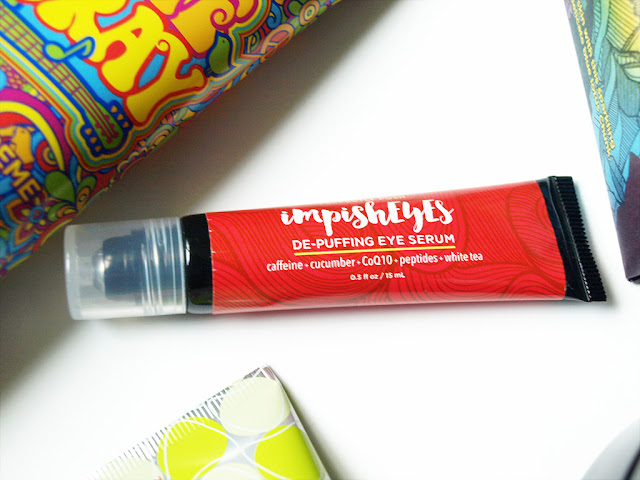 I want to try the Impish Eyes De-Puffing Eye Serum. The before and after photo looks great!