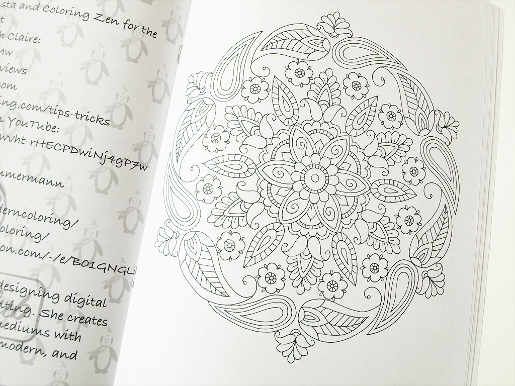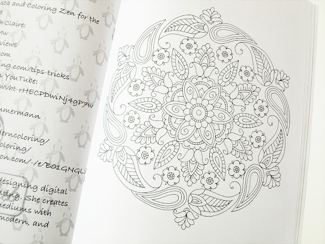 The designs are printed in a one-sided layout so you can color them and then tear them out for display if you want. All of the illustrations are pretty random, and by that I mean there are a good variety of pictures to choose from. I really liked this symmetrical one!