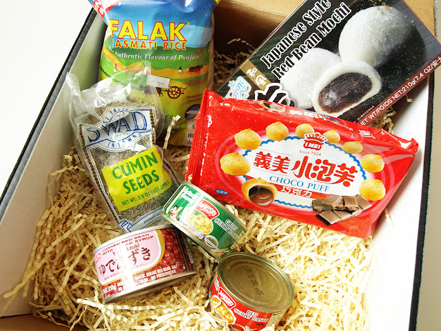 The box actually contained seven individual items and one of them is not listed in the info booklet (the Choco Puffs). The booklet included lots of information about the adzuki red bean paste and Maesri curry paste but none about the other items.