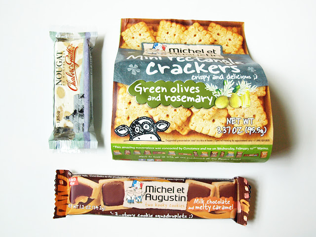 - Michel et Augustin Rectangle Crackers – I didn’t know Michel et Augustin made savory snacks, too, so I was really excited to try these. They were just as delicious as the cookies! They’re little mini crackers with green olive and rosemary flavors. I love dipping fresh bread in rosemary and olive oil and these tasted just like that.