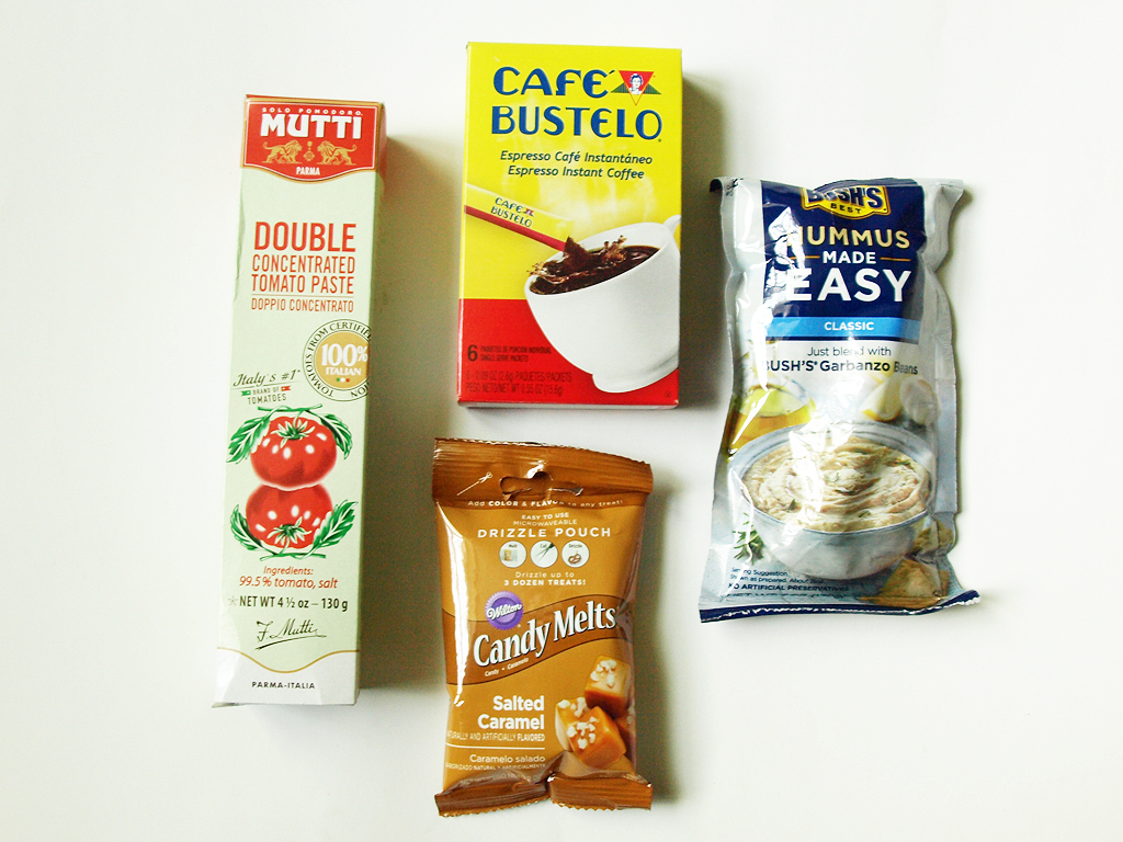 - Wilton Candy Melts in Salted Caramel ($1.99) – I love salted caramel so much! This is a neat little pouch filled with chips that you microwave then drizzle over whatever you want. I’m saving it to use on ice cream.