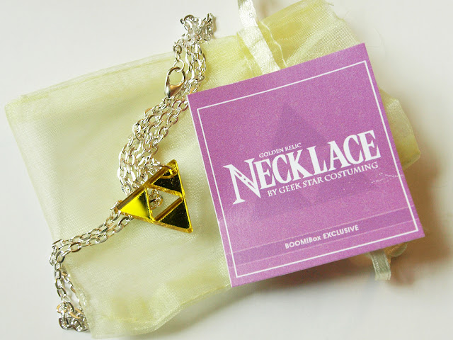 - Golden Relic Necklace – Okay, I know that this one is from Zelda! This necklace is a BOOM!Box exclusive from GeekStar Costuming. The chain is shorter than necklaces I usually wear but I like the simple design.