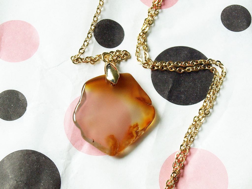 - Amber “Eternal” 18k Yellow Gold Plated Necklace ($59) – This necklace is my favorite item this month! I love necklaces with long chains, and this one is even more unique because it has a Y-shaped chain. The natural orange stone is beautiful and totally my style.