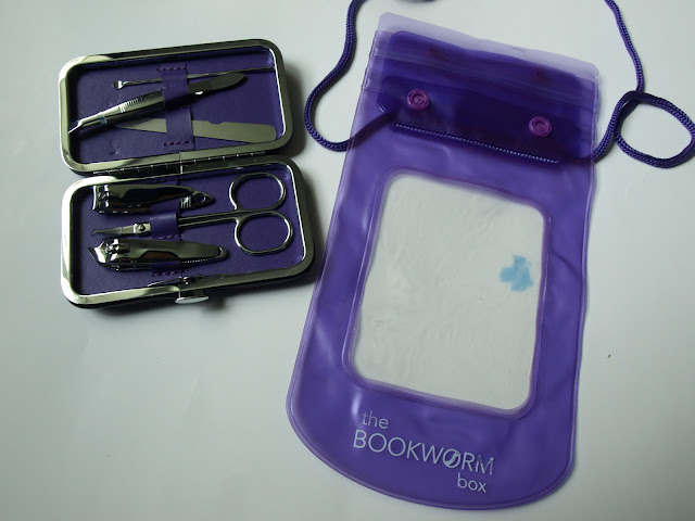 There was also a nail kit with The Bookworm Box logo on it which is not something I would expect from a book box but it’s a nice item nonetheless. I’m going to take this to work and leave it at my desk for emergency hangnail removal. The pouch is clear and has a long string attached, so I’m assuming you can wear this around your neck and store your phone or other small items inside of it. It’s actually a great idea for travel when you want to keep something close to you, maybe under a jacket or something like that.