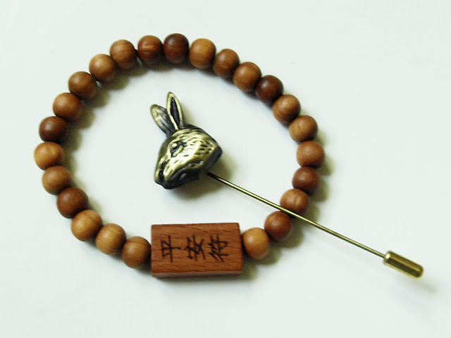 My favorite item was the rabbit pin since rabbits are my favorite animals. The wooden bracelet is also an interesting design and easily transitions from dressy to a more casual outfit.