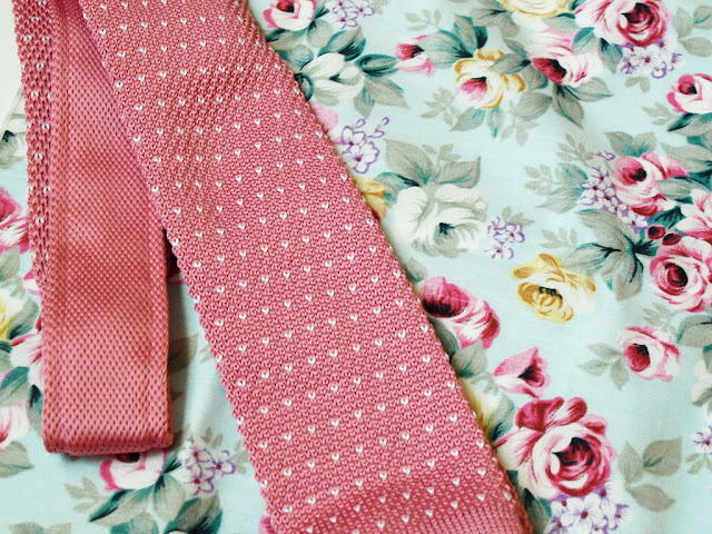 Usually there is a little card that includes information about the items, but my package didn’t contain one this month. Regardless, the tie is a pink knit tie and the pocket square was a matching floral pattern. I love the colors and think this would be perfect for a summer wedding.