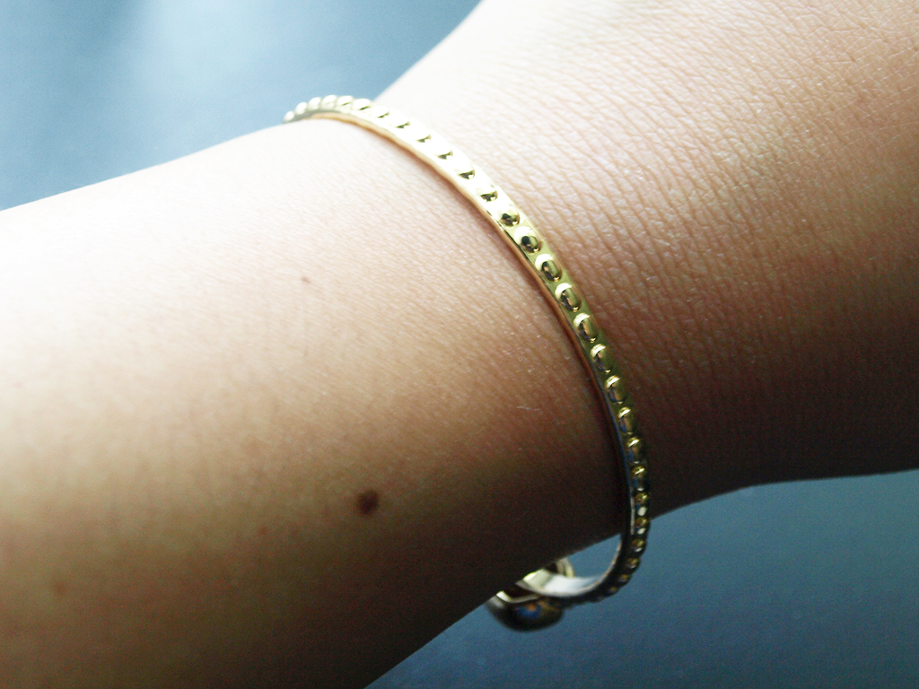 The Summer Cauri Bangle by Nilaï is the perfect piece for July! The design features small cauri shells on either end. The bracelet is adjustable, and I love that it is small and delicate (my favorite type of jewelry).