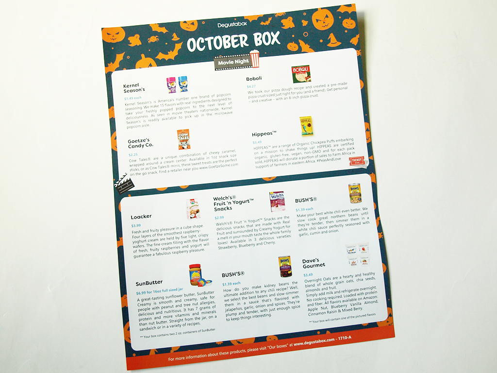 The October Degustabox is Movie Night themed and has lots of fun sweet treats! This box always delivers great full-sized foods and snacks.