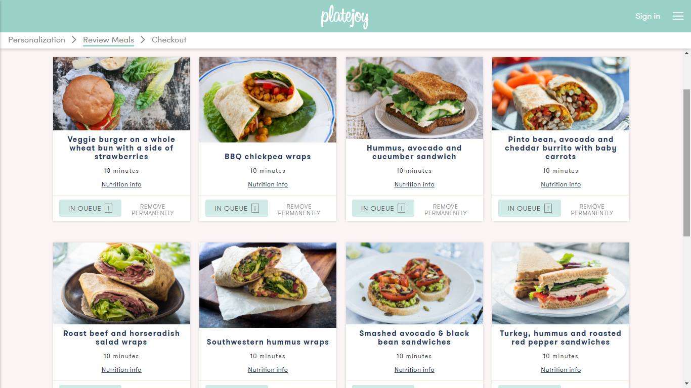 So how does this all work? It’s simple: first, you’ll fill out a lifestyle quiz that PlateJoy will use to tailor the appropriate recipes for you. You’ll then receive a custom meal plan with recipes and ingredient lists to help you save time and reduce food waste. Then it’s up to you to obtain the ingredients at your local grocery store (or opt in to Instacart delivery, if available in your area) and cook the meals!