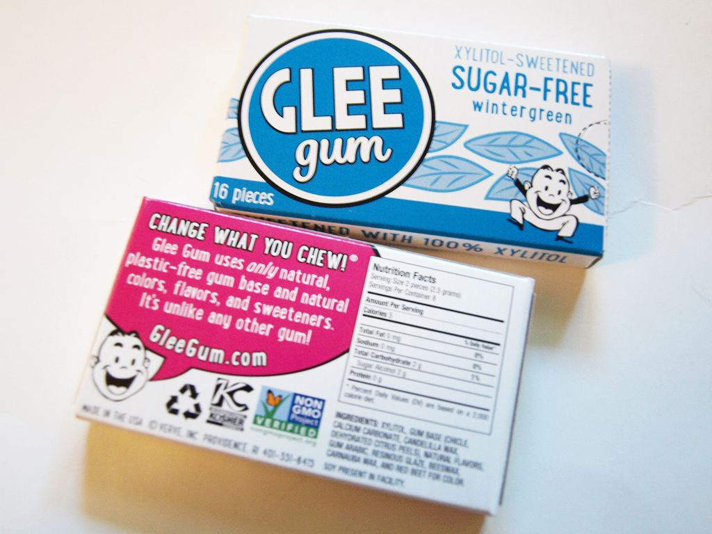 I love Glee Gum’s packaging. The Glee Guy mascot is a cute retro design, as is the rest of their design. It’s also eco-friendly: all of the packaging is recyclable with no blister packs. Their Classic gum is sweetened with fair trade cane sugar and brown rice syrup. These new Sugar-Free flavors are sweetened with 100% xylitol from American birch and beech trees for added dental benefits.