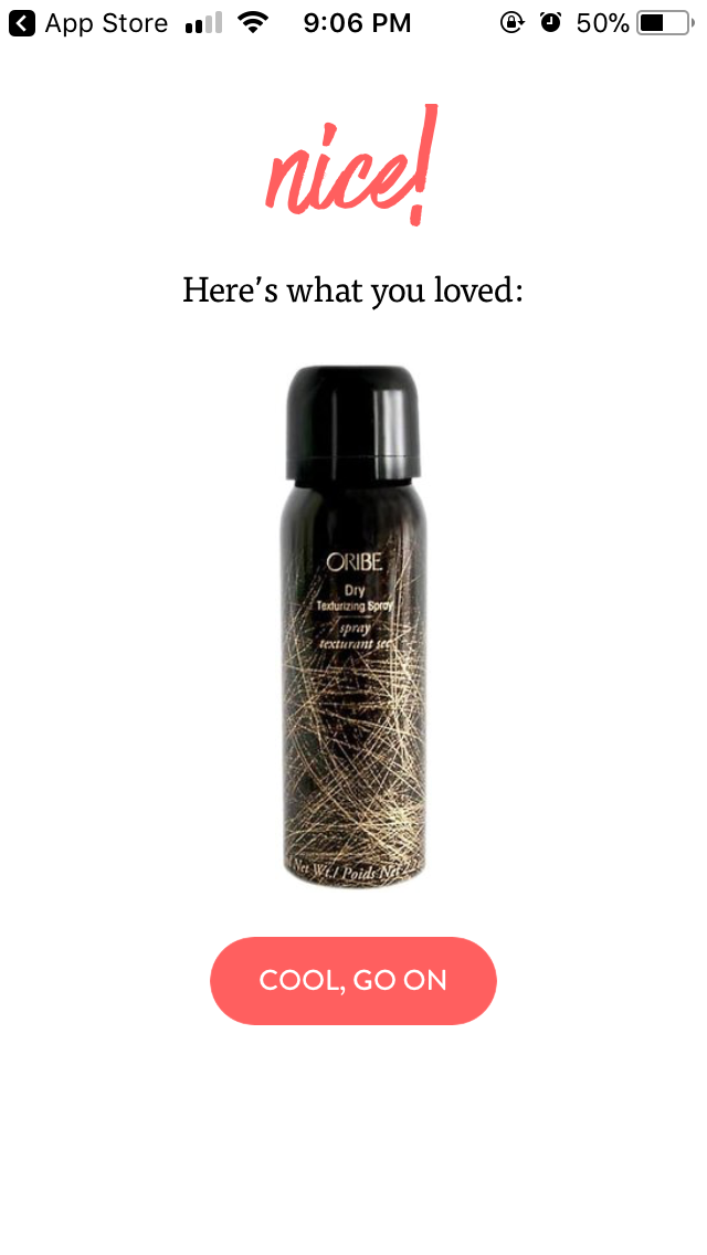 My favorite feature on MiaMia is their huge catalog of products! I’m always looking for new beauty products to try, but sometimes it seems like there are so many out there that it’s overwhelming and I end up finding nothing. I like that, with this app, I can find looks that I like that others have created, as well as the products they used to make that look. Then it’s easy to save that product to my Loves for future reference. You can also click “Buy” and you’ll be redirected to a place where you can purchase the product. For example, I added the Oribe Dry Texturizing Spray to my Loves and when I clicked “Buy” the app took me to Barney’s to purchase.