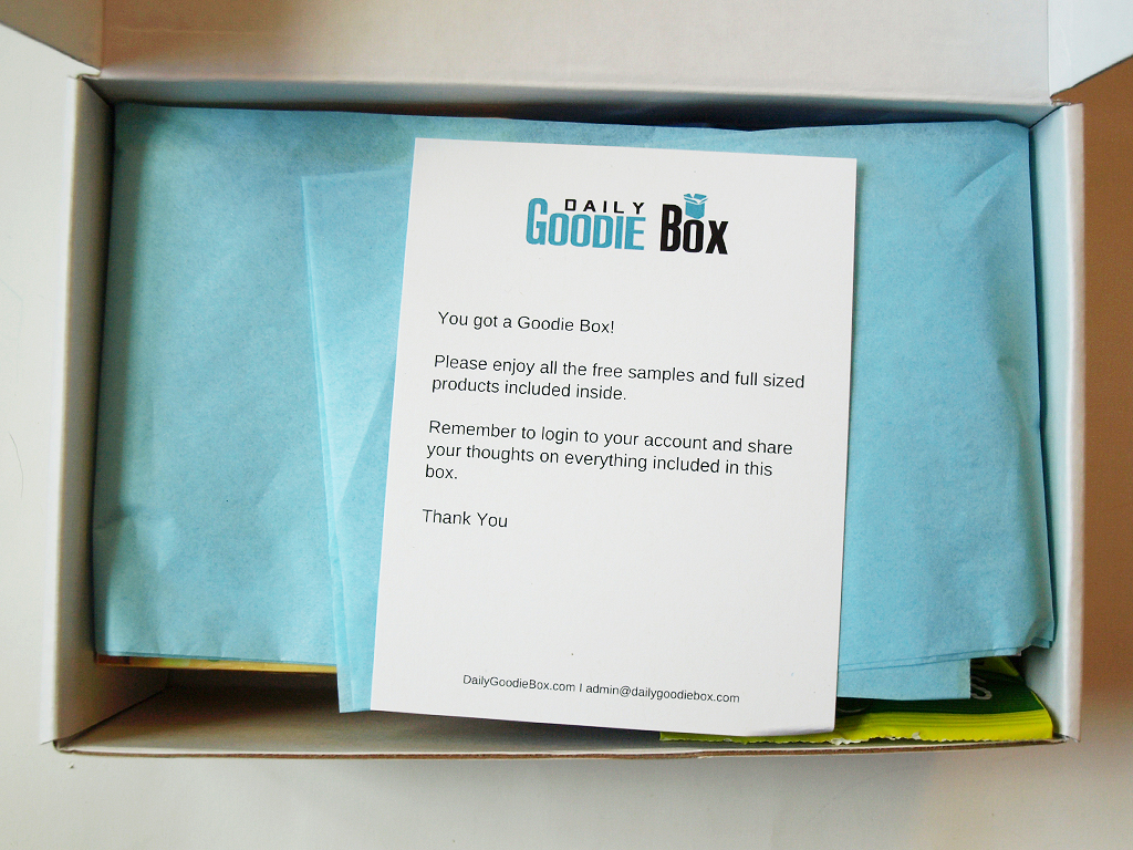 If you haven’t heard of Daily Goodie Box, its a completely free box that sends full-sized products and deluxe samples in exchange for your opinions about them. November’s box had lots of good stuff!