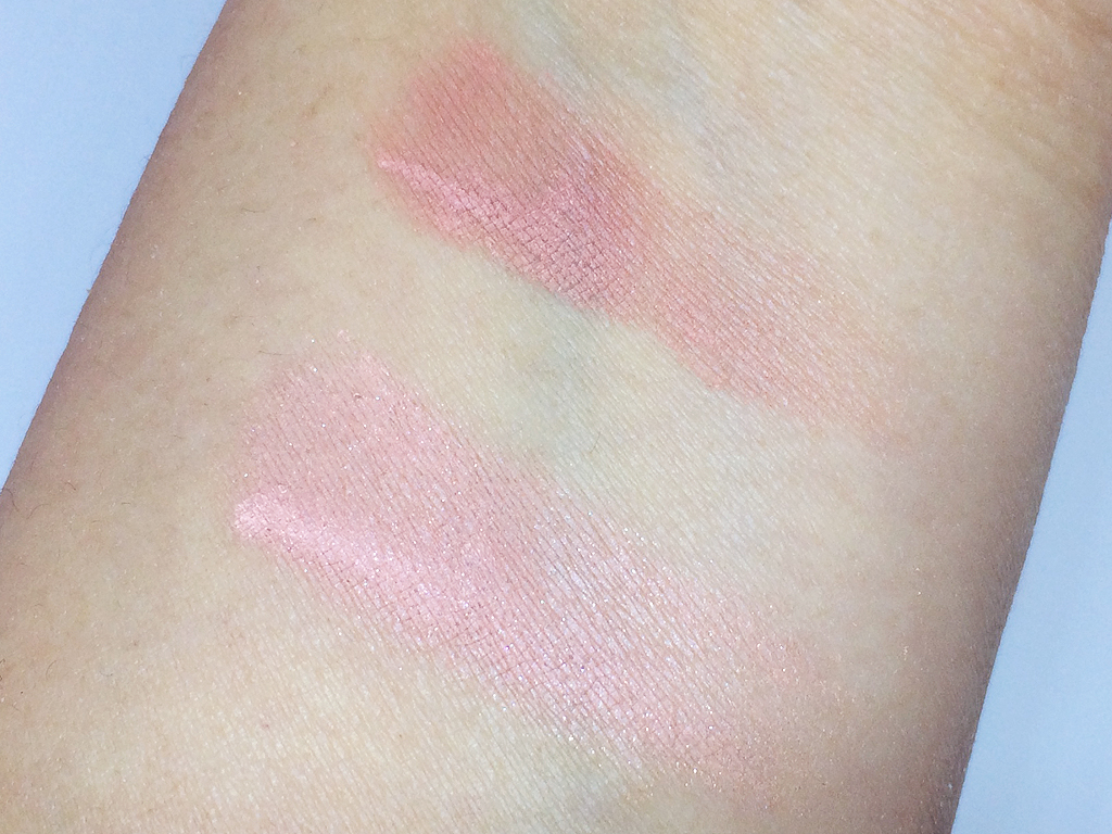 Both of the shadows are densely pigmented and applied a bit chalky. A little definitely goes a long way here. Like the blushes, I would recommend starting off small then building up the color as you see fit.