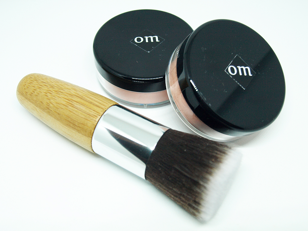OM Kosmetics kindly sent me two blushes and two eyeshadows to review, as well as the Natural Bamboo Kabuki Brush. The brush is the perfect size: not too big, not too small, and it’ll easily fit inside any bag for on-the-go. It’s made from sustainably-harvested bamboo. The bristles are soft and are great for applying the blush or a powder foundation.