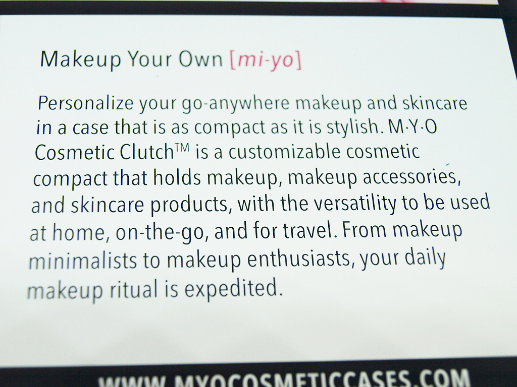 The M-Y-O Cosmetic Clutch won the 2017 Cosmoprof Trendsetter Award for its sleek and useful design. I was interested in trying one out because it seemed like a great way to simplify my on-the-go routine.