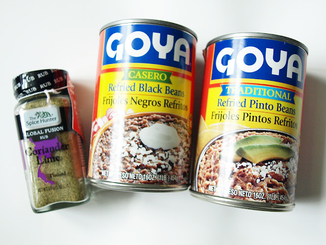 - Goya Refried Black beans and Refried Pinto Beans ($1.39 and $1.09) – Beans are an essential part of my burritos and tacos and Goya always has good quality products. The other side of the product listing insert has a recipe for Warm Bean Dip that I think I’ll try with these.