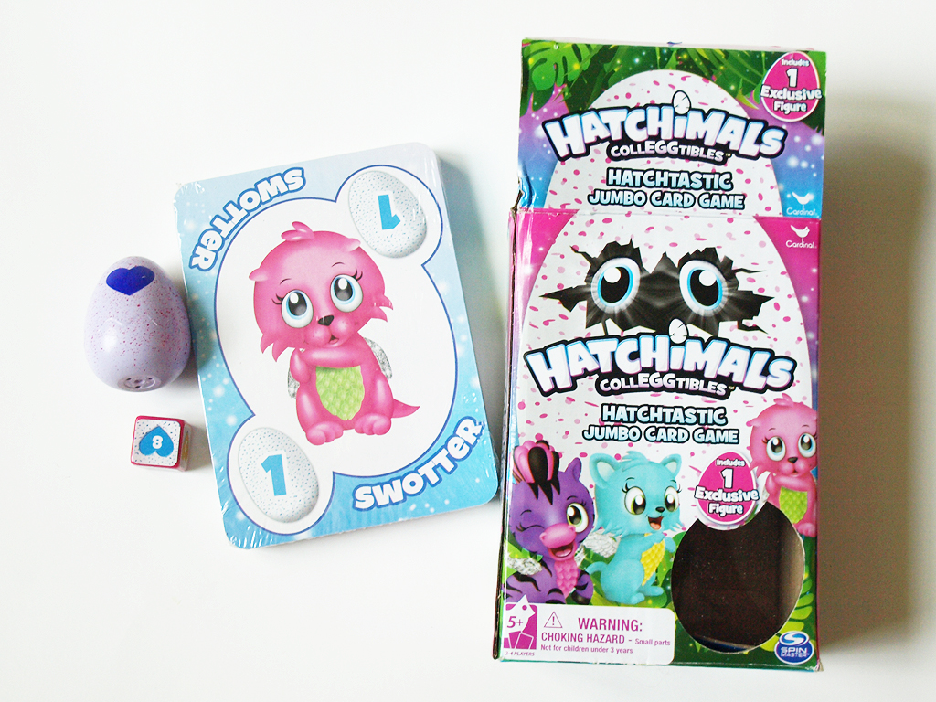 One of the two main games is the Hatchimals CollEGGtibles Jumbo Card Game. I know Hatchimals are huge right now, and this comes with an exclusive figure and a simple card game.