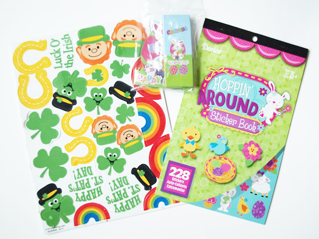 I like the range of items here. There are simple games like the mini Dominoes, plus fun crafts like the felt poster and styrofoam planes and rabbit to put together. I also loved stickers when I was younger (and honestly, still do now) so the St. Patrick’s Day and Easter/Spring stickers would have also been a huge hit with younger me!