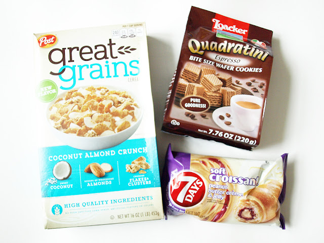 - Post Great Grains ($3.33) – The Coconut Almond Crunch cereal has real tropical coconut, almonds, crunchy flakes, and clusters. It’s a good source of whole grain with no high fructose corn syrup or artificial flavors or colors.