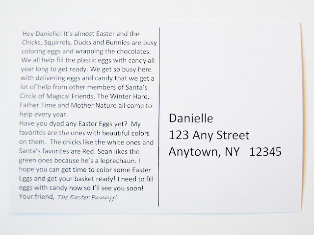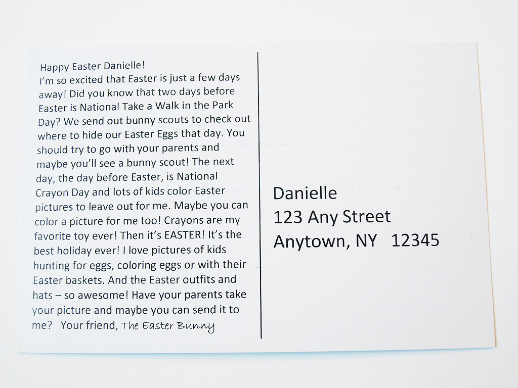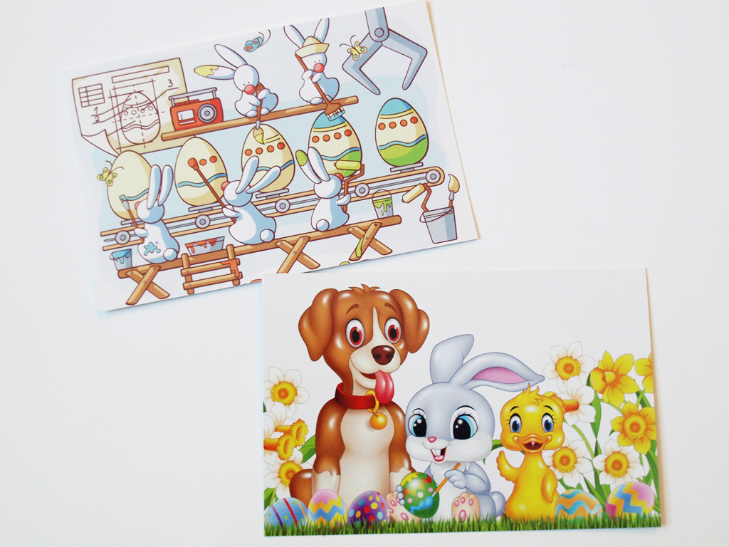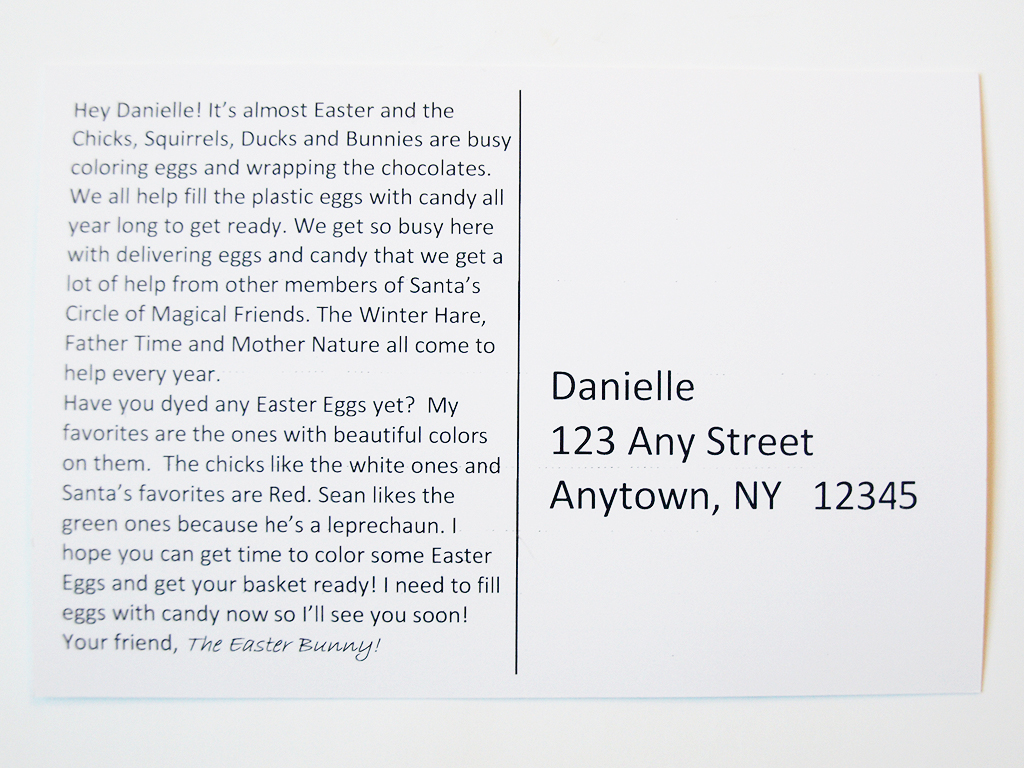 The messages on the postcards are a lot of fun, and I like that they ask questions, too. You and your kids can read them together and then talk about the messages, such as the “have you dyed any Easter eggs yet?” question in the last postcard.