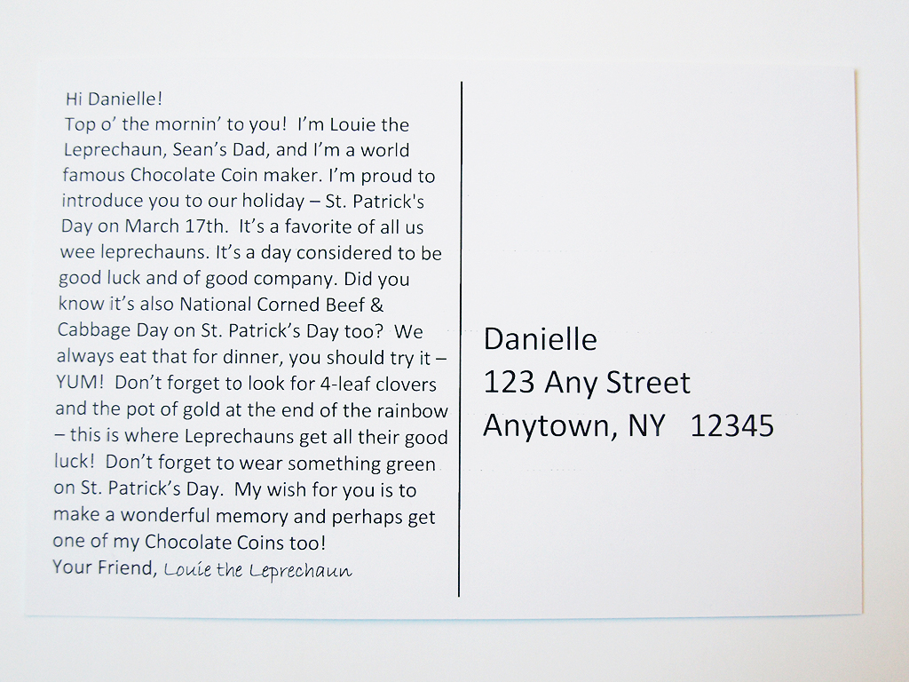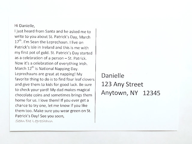 The St. Patrick’s Day messages are from Sean and Larry the Leprechaun.