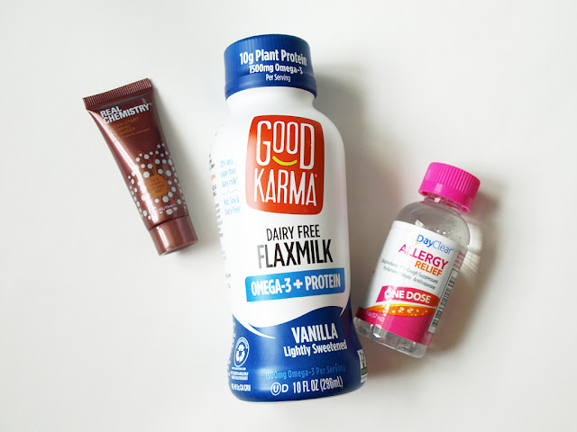 - DayClear Allergy Relief – This a fast-acting, one dose allergy relief supplement. It provides temporary relief from sneezing, runny nose, watery eyes, itchy nose and throat, and cough. I always get bad allergies around this time of year, so this will come in handy.
