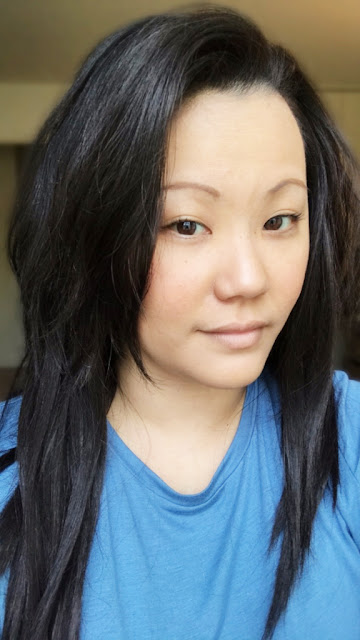Here’s what the 21″ Hairuwear Extension looks like. It’s made with synthetic hair that is layered for seamless blending and can be heat styled up to 300°F. The hair is really soft and the Darkest Brown color matched my natural shade perfectly.