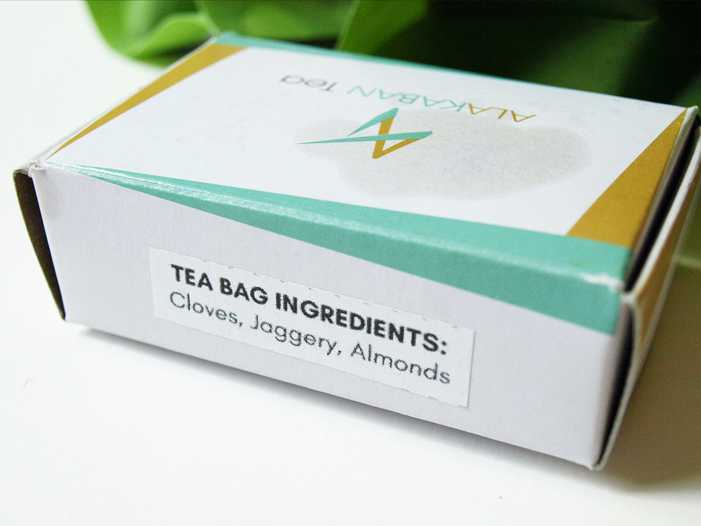 The tea bags are already filled with the cloves, jaggery, and almonds that are also included in the box for the loose leaf tea.