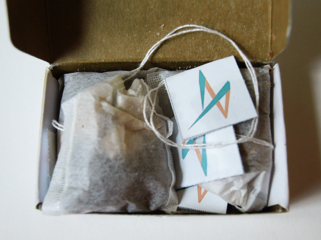 The box contained two tools this month: a wooden teaspoon and strainer. The strainer is still inside the white bag pictured above, when I took these photos I didn’t realize it was still in there, I thought it was just the spoon. Why didn’t I just take another picture of it? Because I just made the tea and the strainer is currently sitting on my counter, drying out. But it’s also wooden and the strainer part is a canvas bag like the one the spoon is resting on in the above photo.