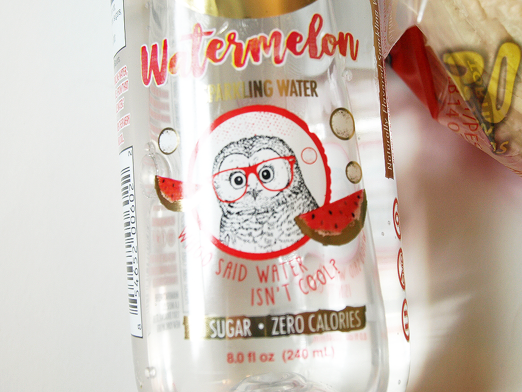 - Tickle Water ($1.29) – How cute is this bottle! I received the Watermelon flavor and it has an adorable owl on it. The water is lightly carbonated with no sugar, sweeteners, sodium, preservatives, and zero calories! It was light and refreshing.