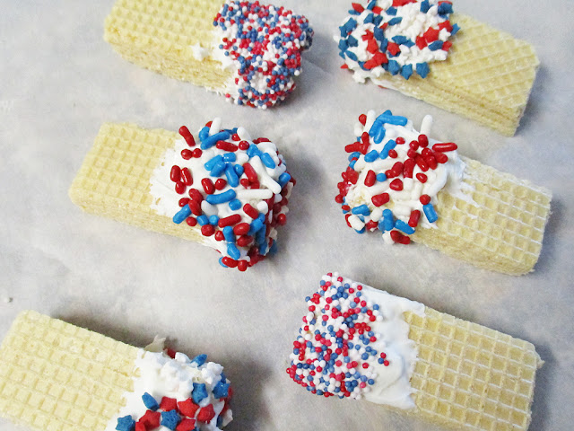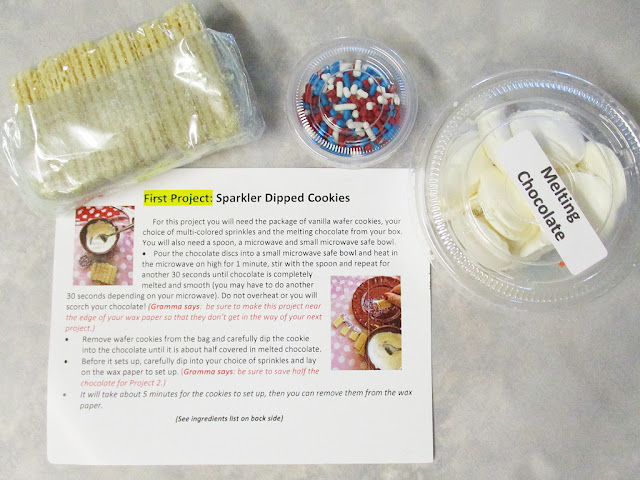 The first project was Sparkler Dipped Cookies and it involved heating up chocolate discs in the microwave, dipping the cookies in, and then adding sprinkles (if you choose). I love how easy all of the crafts are; they’re simple enough for kids of all ages with parent supervision but are still fun and delicious.