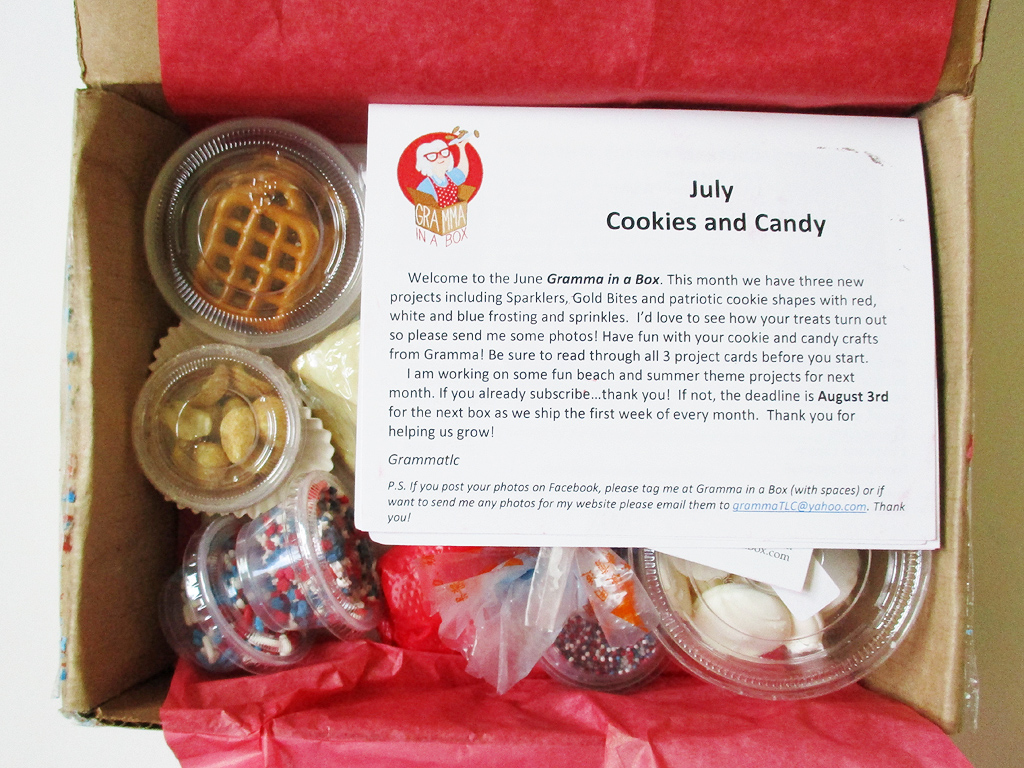 Gramma in a Box is a great subscription for adults and kids alike that sends cookie and candy crafts straight from Gramma each month! July’s box was all about Independence Day.