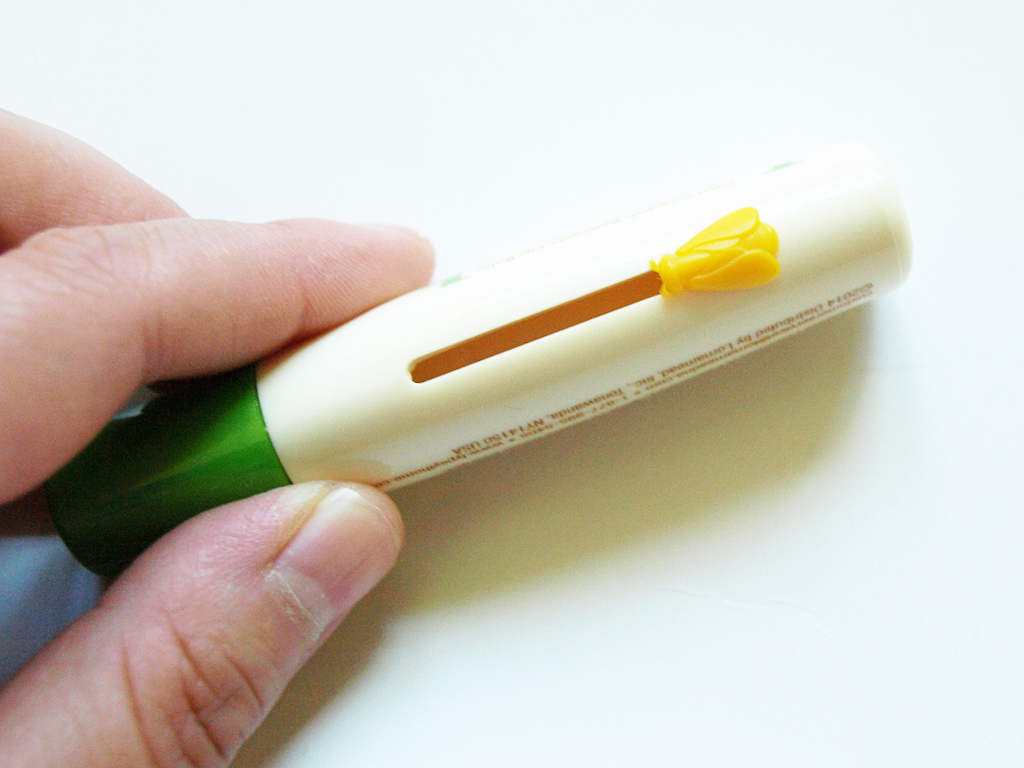 My other favorite thing about the Lypsyl balm, other than how well it works, is the adorable packaging! The cute little bee on the side is what you use to push the balm up and down for application.