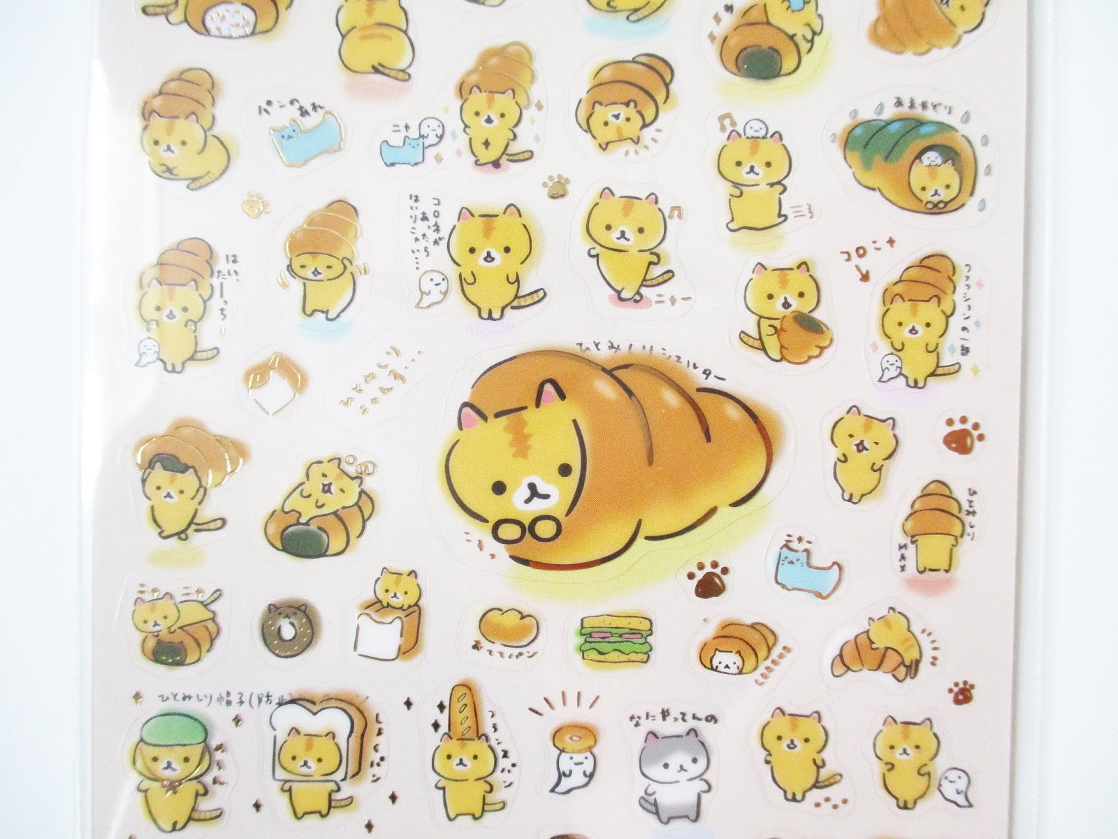 - San-X Corocoro Coronya Stickers: This character is new to me, but it’s a sheet of cat stickers, so of course I love them! The info sheet says Corocoro Coronya is “a small lazy cat who lives on a street corner and likes to hide inside a coronet bread.”