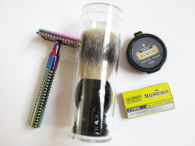 Even though their website is geared towards men, I wanted to try them out because ladies, we can wet shave, too! I received a basic kit to try out and used it to shave my legs. Here’s what I used: