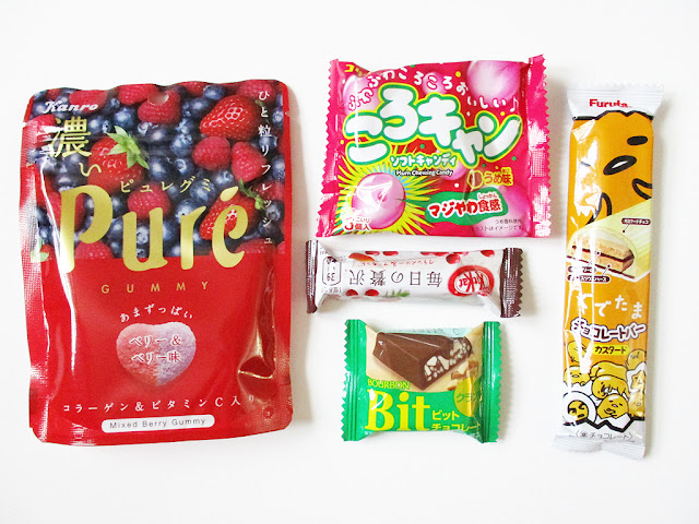 - Kanro Pure Gummy Mixed Berry Flavor: These gummies are made with real fruit juice and a mix of seasonal berries. They had a sugary coating and were very tasty!