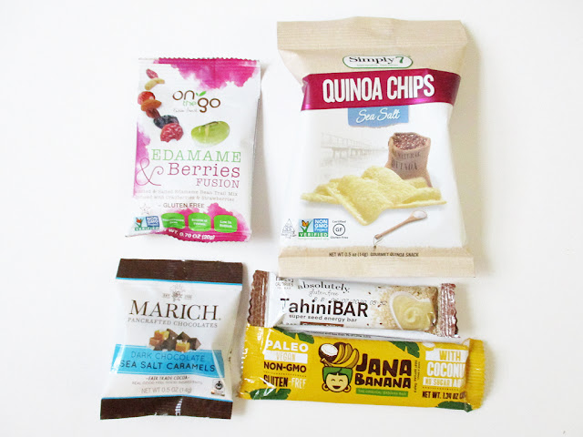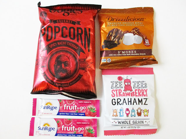 - SunRype Fruit to Go: I love these fruit bars. Mine were both Apple Raspberry flavored and they had a ton of fruit flavor. They’re also gluten- and nut-free and vegan.