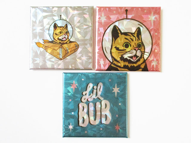 - Space Box Enamel Pin: This pin is made by Pinsource and features BUB flying through space in her little box rocket. So cute!