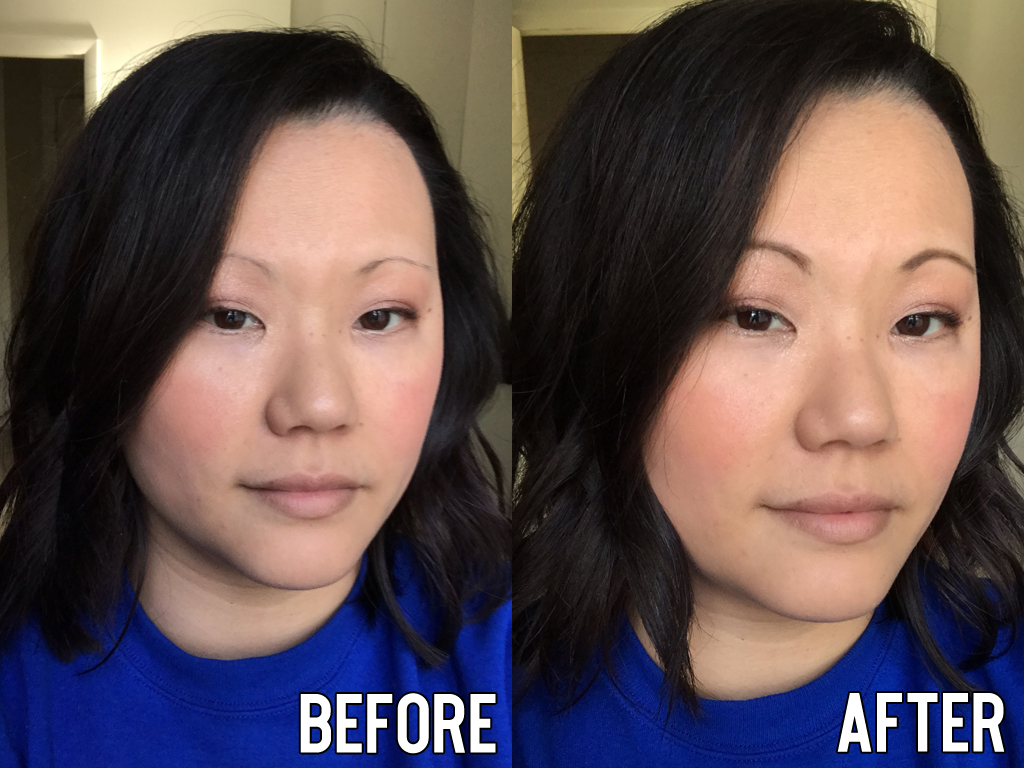 Here’s a before and after: as I said, my natural brows are pathetically thin. I’ve been trying to grow them out, but if you’ve ever overplucked you know that it’s a long process. At this point I’ve just resigned myself to the fact that I’ll have to use brow products from here on out. But luckily this gel is amazing! I love how natural it looks in the after photo. The brush makes it so easy to apply it into whatever brow shape you want, and you can add in more of the dark shade to build up the color if you want to go darker than what I’ve done here.